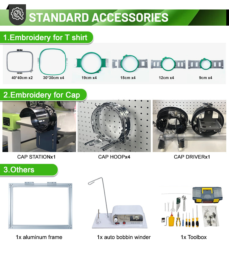 FJ-1501CS Single head embroidery machine, adopt high precision new type thread, offer 9,12,15 and 20 needles one head design. Suitable for flat bed, cap/hat, finished garments embroidery and more. Embroidery Machine Area is 350 mm x 500 mm.
