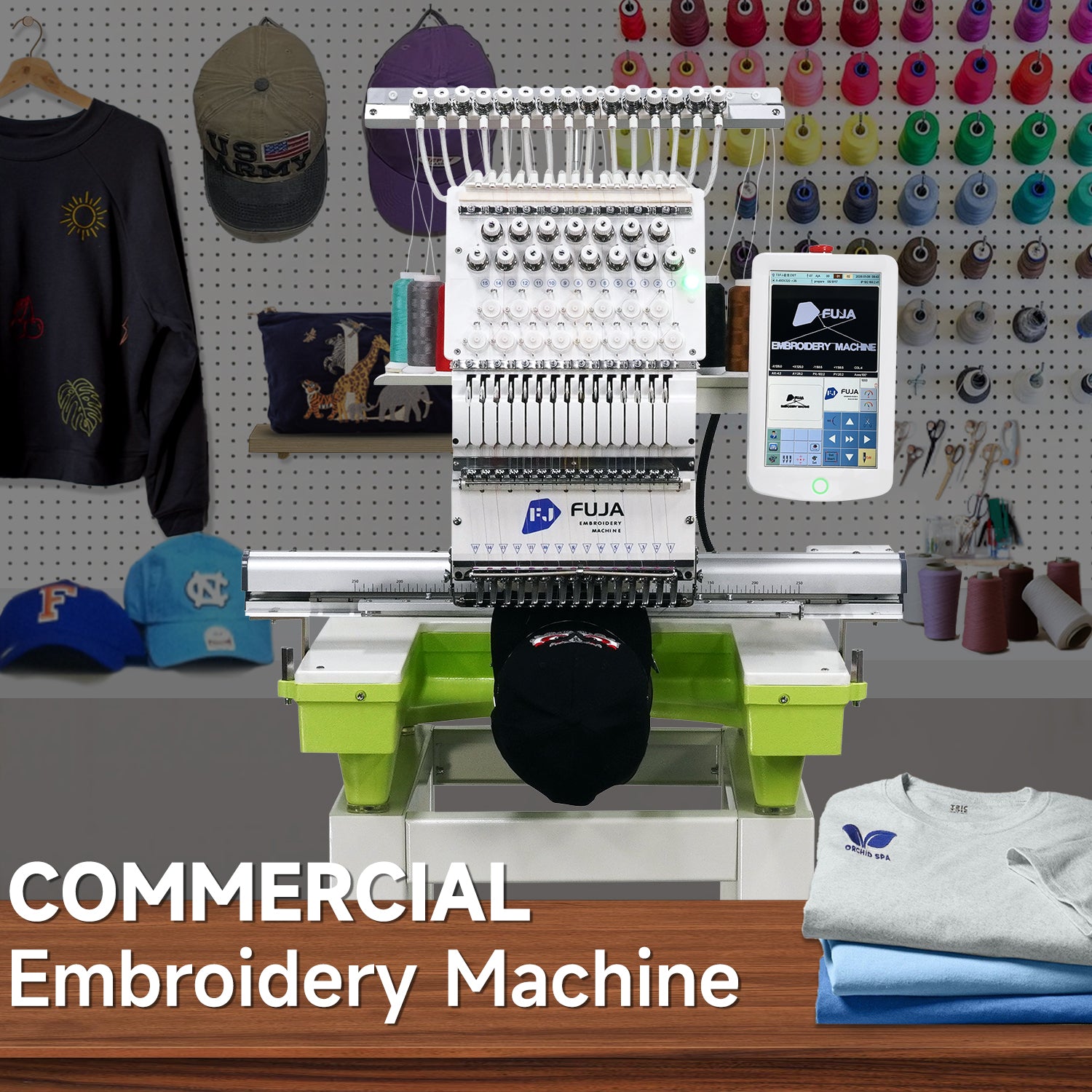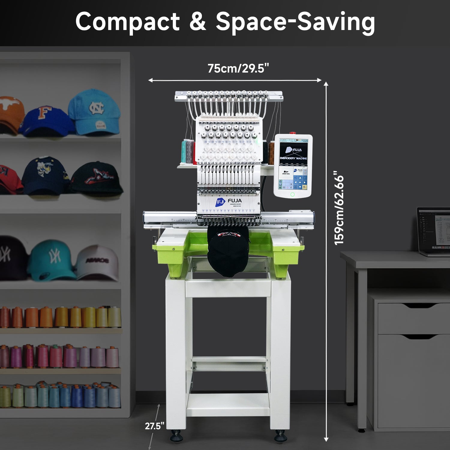 FJ-1501CS Single head embroidery machine, adopt high precision new type thread, offer 9,12,15 and 20 needles one head design. Suitable for flat bed, cap/hat, finished garments embroidery and more. Embroidery Machine Area is 350 mm x 500 mm.