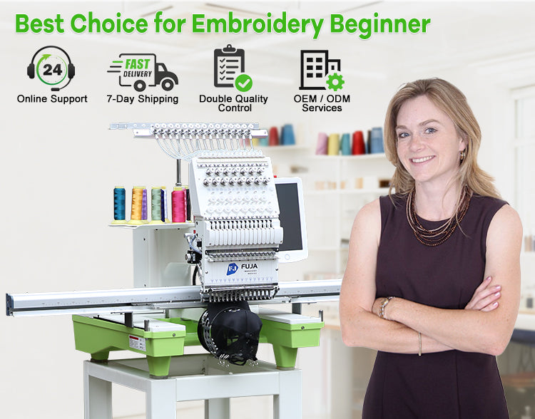 FJ-1501CS Single head embroidery machine, adopt high precision new type thread, offer 9,12,15 and 20 needles one head design. Suitable for flat bed, cap/hat, finished garments embroidery and more. Embroidery Machine Area is 350 mm x 500 mm.