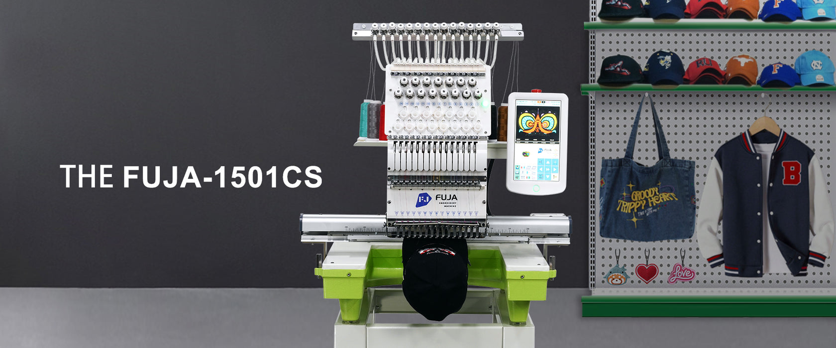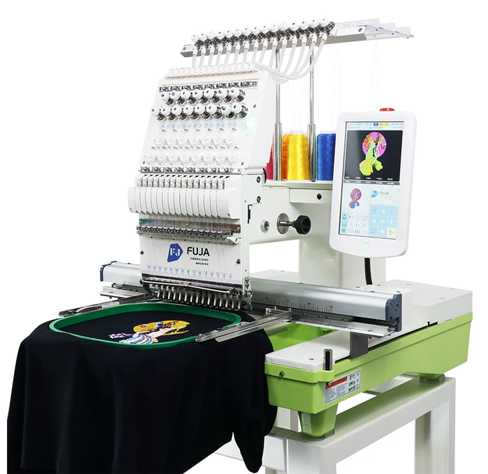 FJ-1501CS Single head embroidery machine, adopt high precision new type thread, offer 9,12,15 and 20 needles one head design. Suitable for flat bed, cap/hat, finished garments embroidery and more. Embroidery Machine Area is 350 mm x 500 mm.