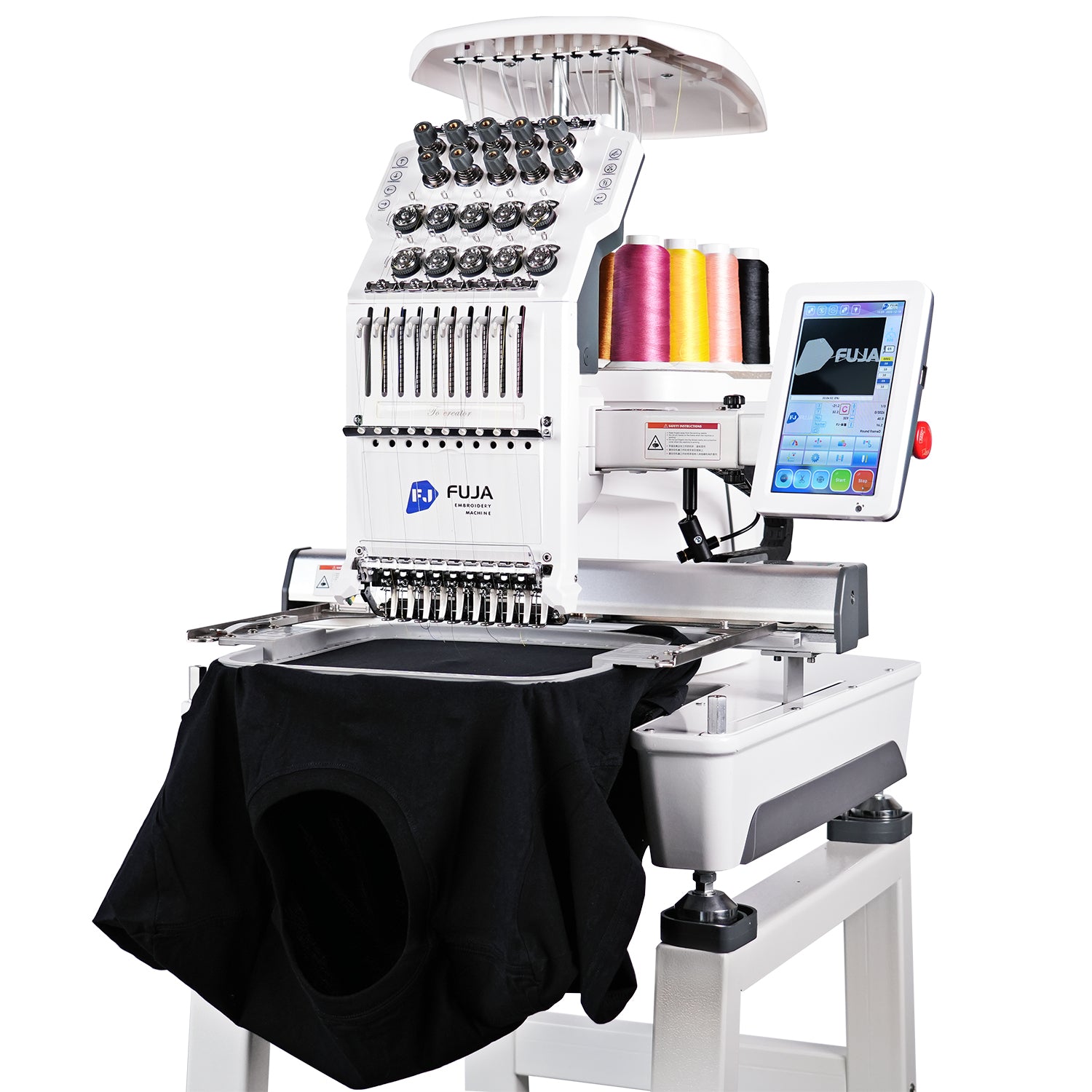 FJ-1501CS Single head embroidery machine, adopt high precision new type thread, offer 9,12,15 and 20 needles one head design. Suitable for flat bed, cap/hat, finished garments embroidery and more. Embroidery Machine Area is 350 mm x 500 mm.