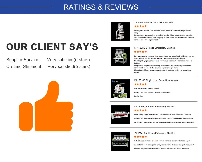 FJ-1501CS has auto thread trimmer, auto color change, auto bobbin winder function, the max. speed is 1200 SPM, it use 270° Cap Embroidery System. Serco motor 150W - lowest power consumption in the industry.